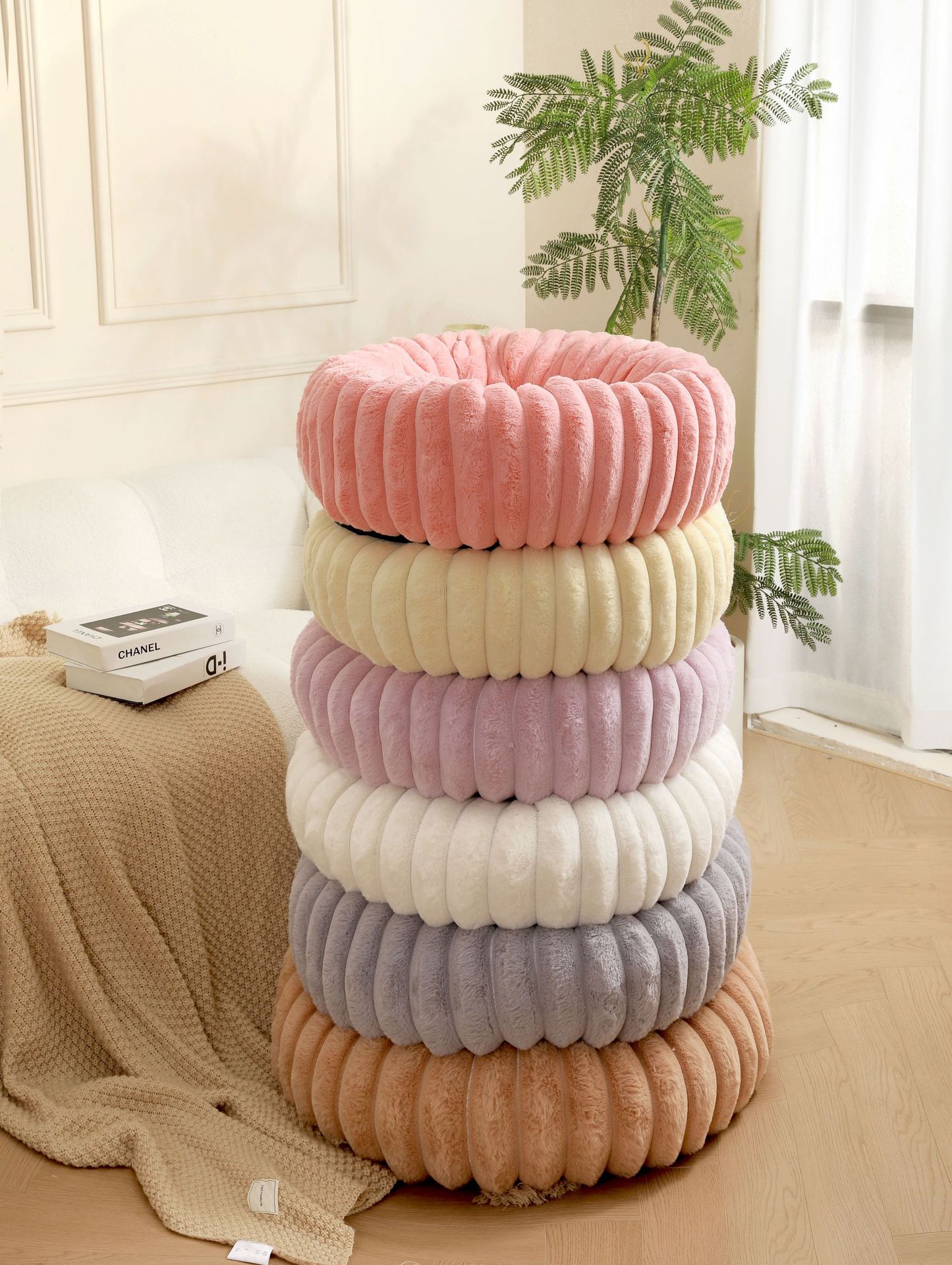Faux Rabbit Fur High Gram Weight Straight Strip Pet Bed Mat